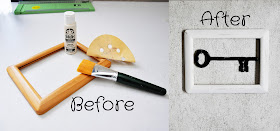 Ashwee gave me the idea of recovering with scrapbook paper and mod podge for letters, frames, etc. So I took a letter that was black and kinda boring, made it polka dotted red with some distressing around the edges. I also did a couple of frames that Ash gave me that were broken and she wasn't using anymore. I repurposed those, and once Walgreens gets their online photo order system back up, I will order some new prints for these. The second one is missing a back, so I have to come up with a replacement for that one, and then I will probably hang it or prop it somewhere. And lastly, I had a plain wooden frame laying around that I painted with Vintage White acrylic paint, then roughed it up with some sandpaper. I took the back and glass off, and used it to frame a skeleton key and hung it up in my office. I like the new purpose of it much better.